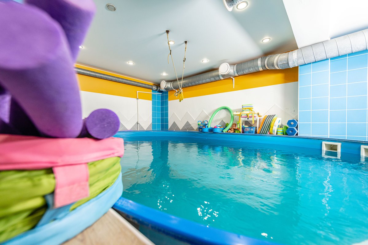 Мы очень давно ходим в ближайший детский бассейн, который является единственным высокого уровня в городе. Вода без хлорки, за детьми можно наблюдать по камерам во время занятия и есть возможность заниматься с тренером, который имеет индивидуальный подход.