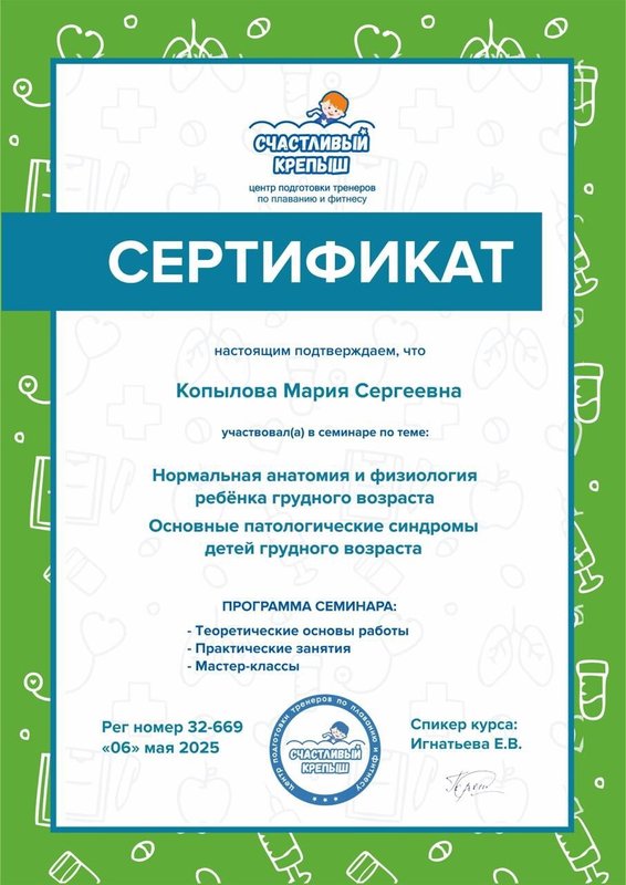 Мы посещали семейный центр, а именно занятия по грудничковому плаванию, что есть не везде. Могу отметить, что тренеры могли заинтересовать нашего ребенка, особенно Екатерина, которая проводила занятия в виде игры. Выделю, что у ребенка были успехи и все получалось.